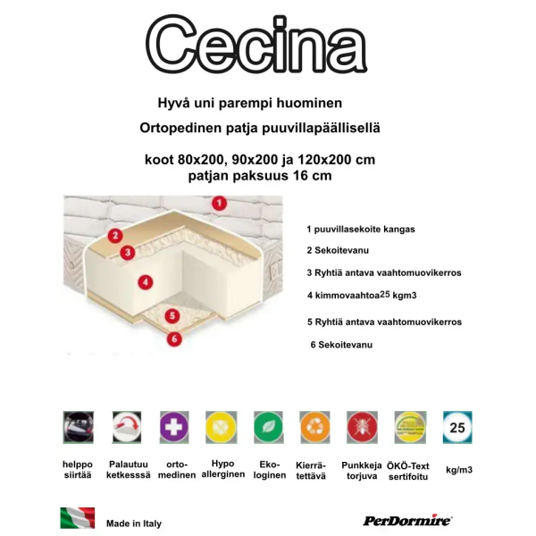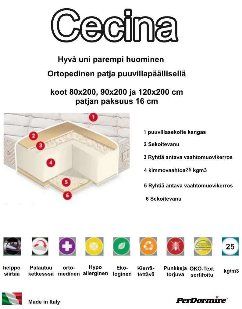 90 cm | 200 cm | 16 cm | cm | cm | cm | cm | cm | cm | cm | cm | cm | cm | cm | cm | cm | cm | cm | cm | cm | cm | cm | cm | cm | cm | cm | cm | 120x200 cm | Vaahtomuovipatjan korkeus ilmoitettu ilman sijauspatjaa | cm | HYPO-allergeeninen patja jossa on ÖKÖ-TEX Sertifikaatti., Ilmavuutta tuova Puuvilla sekoitekangas verhoilu, Kimmovaahto HR30 paksuus 14 cm, Kimmovaahdon alla ja päällä 3 cm vaahtomuovikerrosKääntöpatja, Ortopedinen tuote, Pinnassa ilmavuutta tuova pintavanu, Punkkeja torjuva, Tikkauksessa sekoitevanua | Luonnonvalkoinen | cm | Takuu 2 vuotta | Tilaustuote | Toimitetaan rullalle pakattuna. Paketista avaamiseen jälkeen menee n. vuorokausi että patja palautuu muotoonsa | kg | Italia | cm | cm | cm |