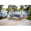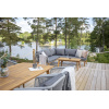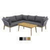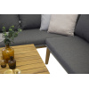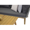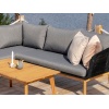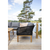 • Alumiinirunko ja akaasiajalat takaavat kestävyyden, kun taas köysipunottu selkä ja sivut tuovat tyylikkyyttä. Akaasiansävyiset yksityiskohdat luovat harmonisen kokonaisuuden sohvapöydän kanssa.