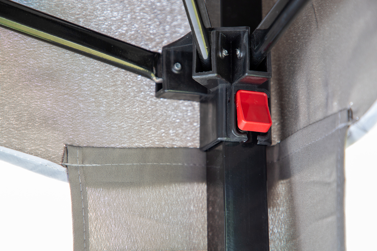 • Kestävä materiaali: Alumiini- ja teräsrunko yhdistettynä polyesterikankaaseen takaa paviljongin pitkäikäisyyden ja vakauden.