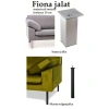 • Runko on laadukasta massiivipuuta, kalustelevyä sekä vaneria. Fiona sohvan istuin- ja selkänojantyynyt ovat irralliset ja verhoilu on vetoketjulla irroitettavissa.