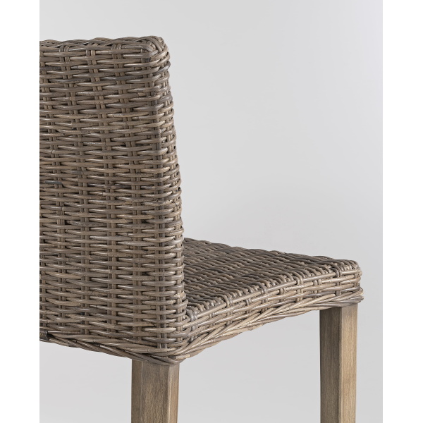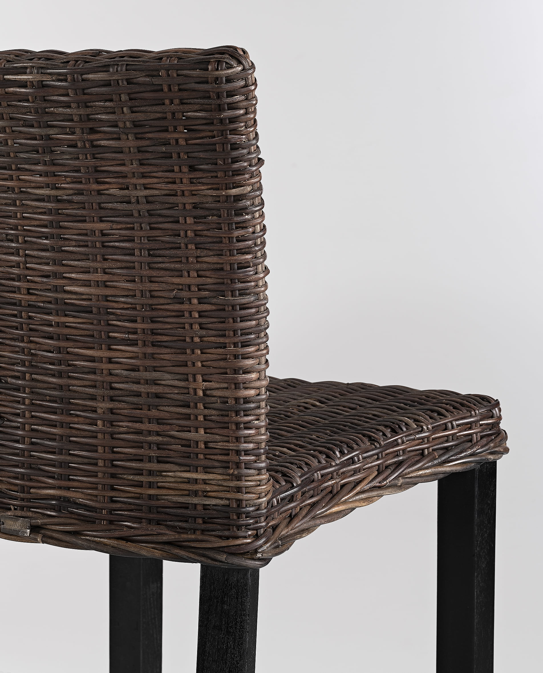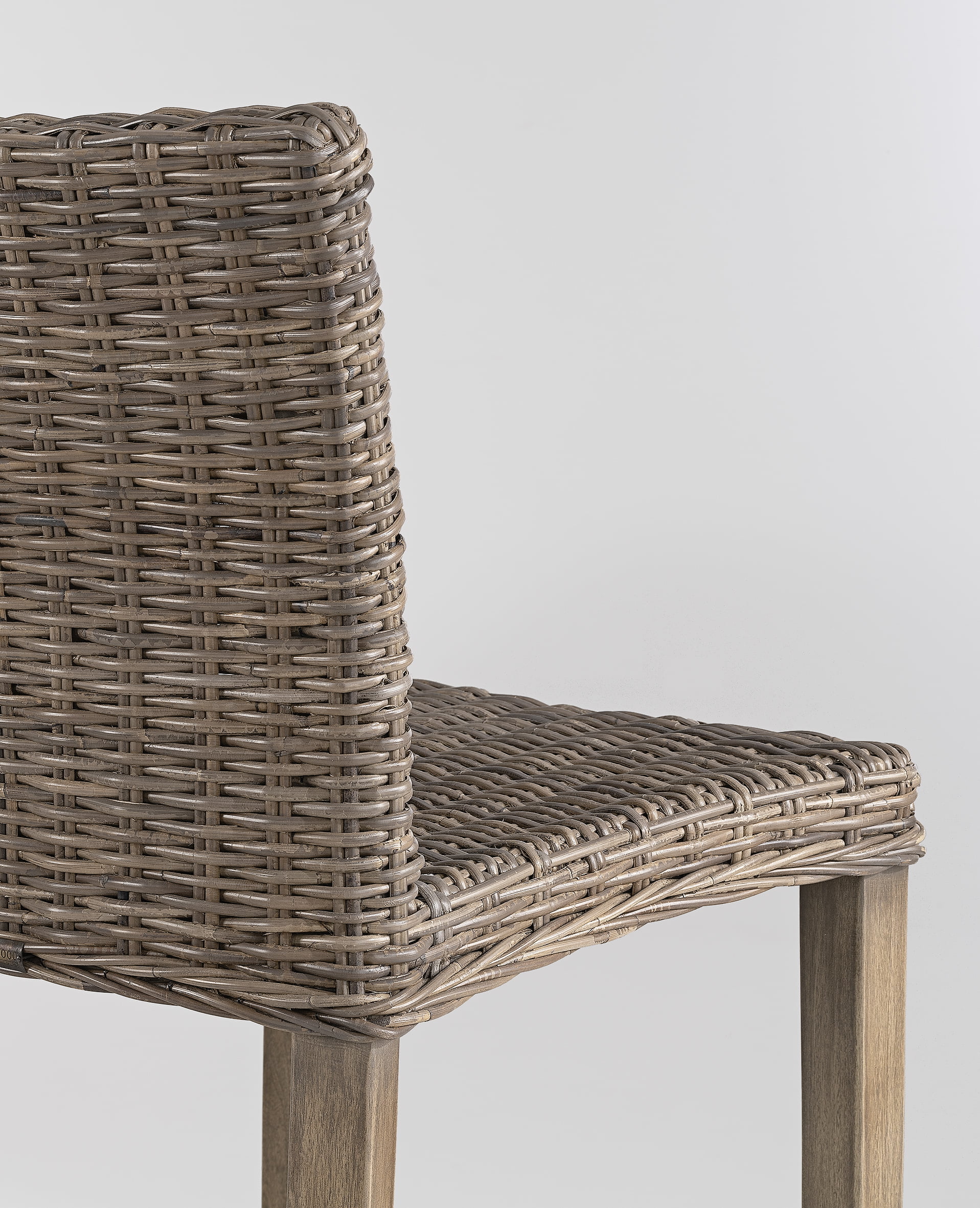 Tuolissa tukevat puiset jalat. Ei ulkokäyttöön mutta soveltuu hyvin esimerkiksi katetulle terassille. Aito rottinki on suojattava säältä. Saatavana kahdessa eri värissä.