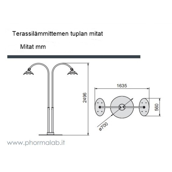 lasitetulle parvekkeelle, pihalle mihin vain tarvitset lämmitintä – sopii myös sisäkäyttöön. Myös ravintola ja kylpyläkäyttöön. Phormalabin terassilämmitin eroaa muista terassilämmittimistä tarjoamalla myös upean ulkonäön ja erittäin laadukkaan ja kestävän infrapuna lämmittimen. Pitkän kehittelyn tuloksena syntyi tämä energiaa säästävä ja erittäin tehokas lämmitin. Italialainen osaaminen näkyy jokaisessa yksityiskohdassa: vuosikymmenten kokemus automaatiosta ja alumiinivalusta varmistaa, että Phormalab-lamppujen runko yhdistää ajattoman designin, huipputason kestävyyden ja tinkimättömän laadun.