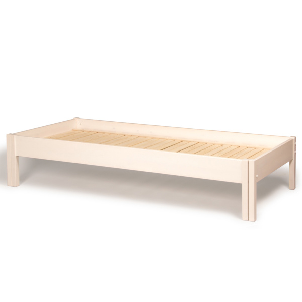Sänky sisältää tukevan mäntysälepohjan ja on saatavana useissa eri väreissä – myös hajuttomalla, allergiaystävällisellä maalilla käsiteltynä. Levitettävä rakenne tekee sängystä monikäyttöisen ratkaisun, joka mukautuu tilan ja tarpeiden mukaan. XXL-nukkujille on saatavilla myös extra tukijalka ja erikoisvalmisteinen patja painorajalla 110–160 kg.
