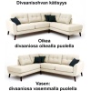 laadukkaat pehmusteet jotka takaavat erinomaisen istuintuntuman. London sohvan istuintyynyt ovat kiinteät. Sohvan erikokoiset koristetyynyt sisältyvät sohvaan.