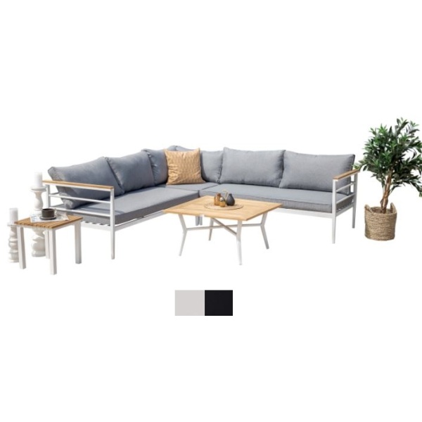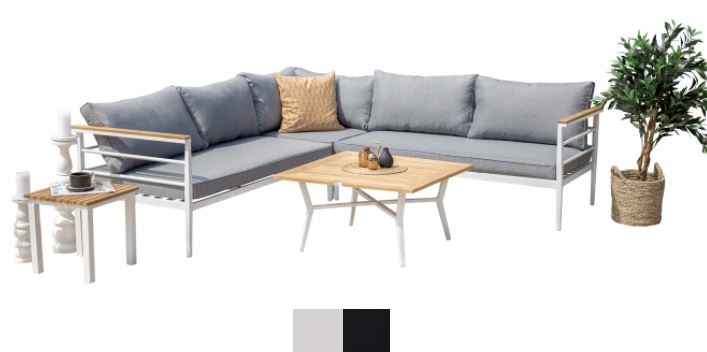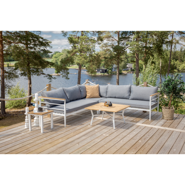 • Moderni muotoilu: Mexico sohvaryhmä tuo terassillesi tyylikkään ja yhtenäisen ilmeen valkoisella rungolla ja tiikkipuisilla yksityiskohdilla.