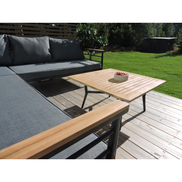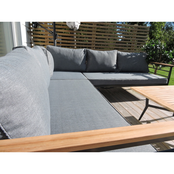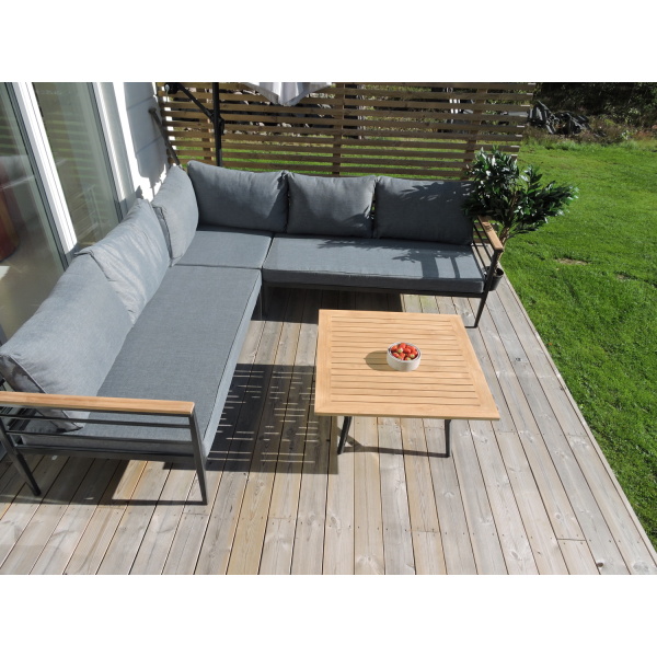 Mexico on moderni tyylikkäästi muotoiltu sohvaryhmä johon sisältyy upea sohvapöytä. Kalusteiden rungot ovat jauhemaalattua metallia. Sohvan käsinojissa käytetty puinen yksityiskohta on samaa tiikkipuuta kuin pöydän pöytälevy. Näin ne luovat yhtenäisen tunnelman terassillesi. Nämä tiikkihuonekalut on valmistettu sertifioidusta tiikkipuusta, joka on kasvatettu huonekalu tarkoitusta varten. Harmaat istuintyynyt sisältyvät ryhmään.