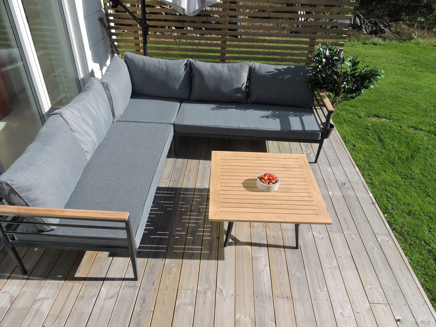 • Monipuoliset mitat: Tilava 230/230 cm sohva ja 80×80 cm pöytä sopivat täydellisesti erilaisiin terassitiloihin.