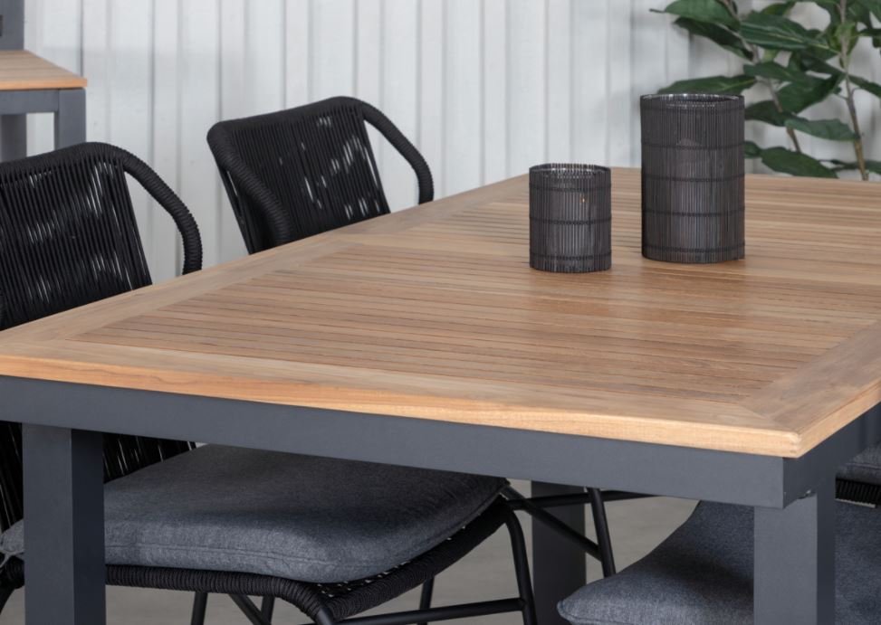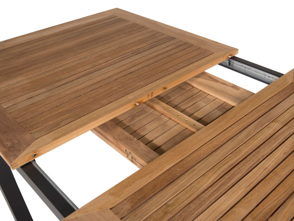 Pöydän kansi on kaunista tiikkipuuta ja runko metallia. Käytännöllisen koon ansiosta pöytä toimii täydellisesti niin pieniin illallisiin perheen kanssa, kuin isompiin juhliin ystävien kera. Valmistaudu kesän illallisjuhliin omalla terassilla! Tiikkihuonekalu on valmistettu sertifioidusta tiikkipuusta, joka on kasvatettu sitä tarkoitusta varten. Yhtenä kestävimmistä puulajeista tiikki sisältää runsaasti öljyä, jota yleensä tarvitaan, jotta materiaali ei halkeile. Tämän ansiosta huonekalua ei tarvitse öljykäsitellä niin usein.