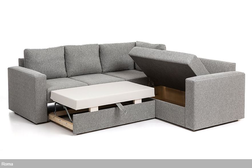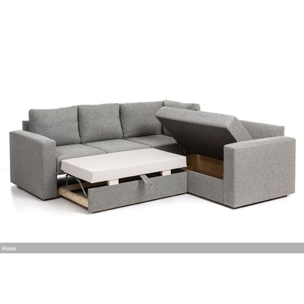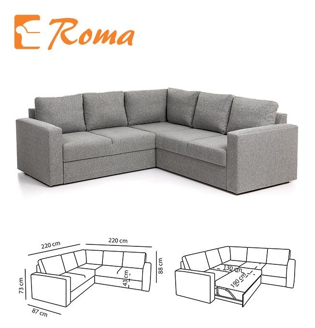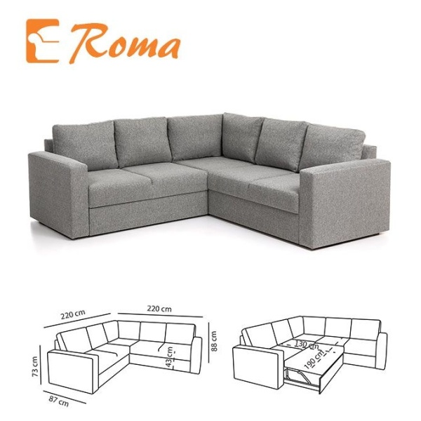 Roma kulmavuodesohva vuodevaatelaatikolla omaa perinteisen suoralinjaisen muotoilun, joka sopii taatusti moniin eri sisustuksiin. Roma sohva tarjoaa sekä mukavuutta että käytännöllisyyttä. Runko on laadukasta massiivipuuta, kalustelevyä sekä vaneria, ja istuimissa on laadukas zig-zag jousitus. Sohvan tausta on myös viimeistelty, joten sijoitus huoneen keskelle on myös mahdollista. Helpon mekanismin ansiosta muutat sohvan vuoteeksi vaivattomasti. Viimeistele kokonaisuus tilaamalla tyylikkäät koristetyynyt.