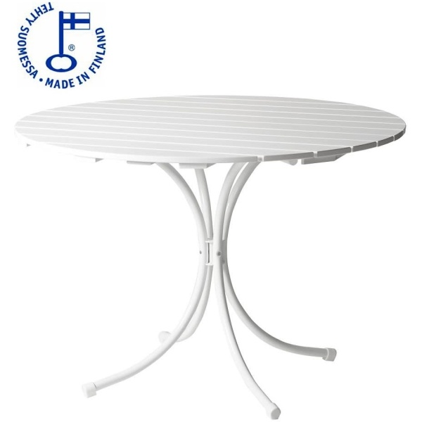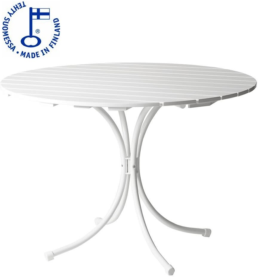 Suvi-pöytä on tyylikäs ja laadukas klassikkotuote joka tuo pihamaallesi tuulahduksen ajatonta tyyliä. Pöydän pinta on valmistettu korkealaatuisesta männystä ja maalattu valkoiseksi. Puuosien puunsyyt on nostettu esiin hiomalla mikä antaa puunpinnalle erittäin kauniin ja arvokkaan näköisen ulkonäön. Pöydän runko on valmistettu pulverimaalatusta teräsputkesta mikä on maalattu valkoiseksi. Pöytä on taattua suomalaista laatua ja myös kotimainen Avainlippu-tuote.